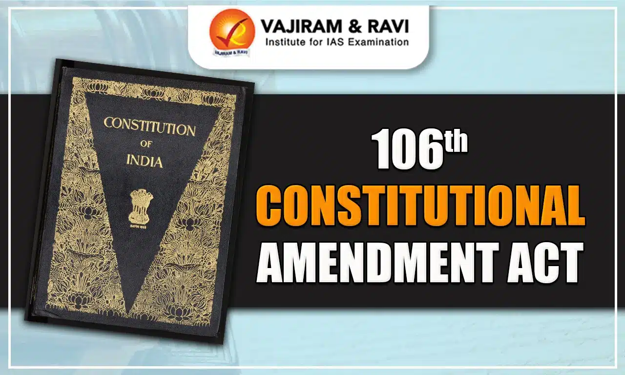 The 106th Amendment Act, 2023 provided for one-third reservation of seats in the Lok Sabha and State assemblies. The goal was to increase women participation in politics and work on overcoming the challenges associated with the patriarchal political landscape. In this article, we are going to cover the 106th Constitutional Amendment Act, 2023.