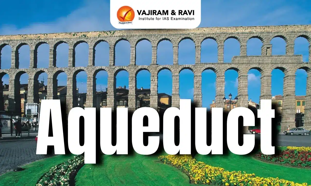 Ans. An aqueduct is a structure designed to transport water from one place to another, typically over long distances.
