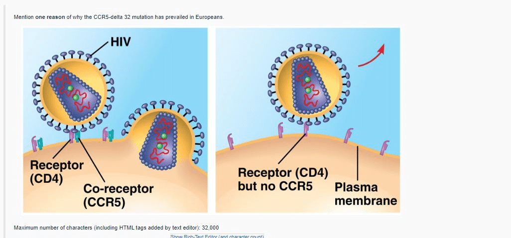 The CCR5 receptors on the surface of the CD4 immune cells act as a doorway for HIV. However, the CCR5-delta 32 mutation prevents these receptors used by the HIV from forming on the surface, effectively removing the doorway.