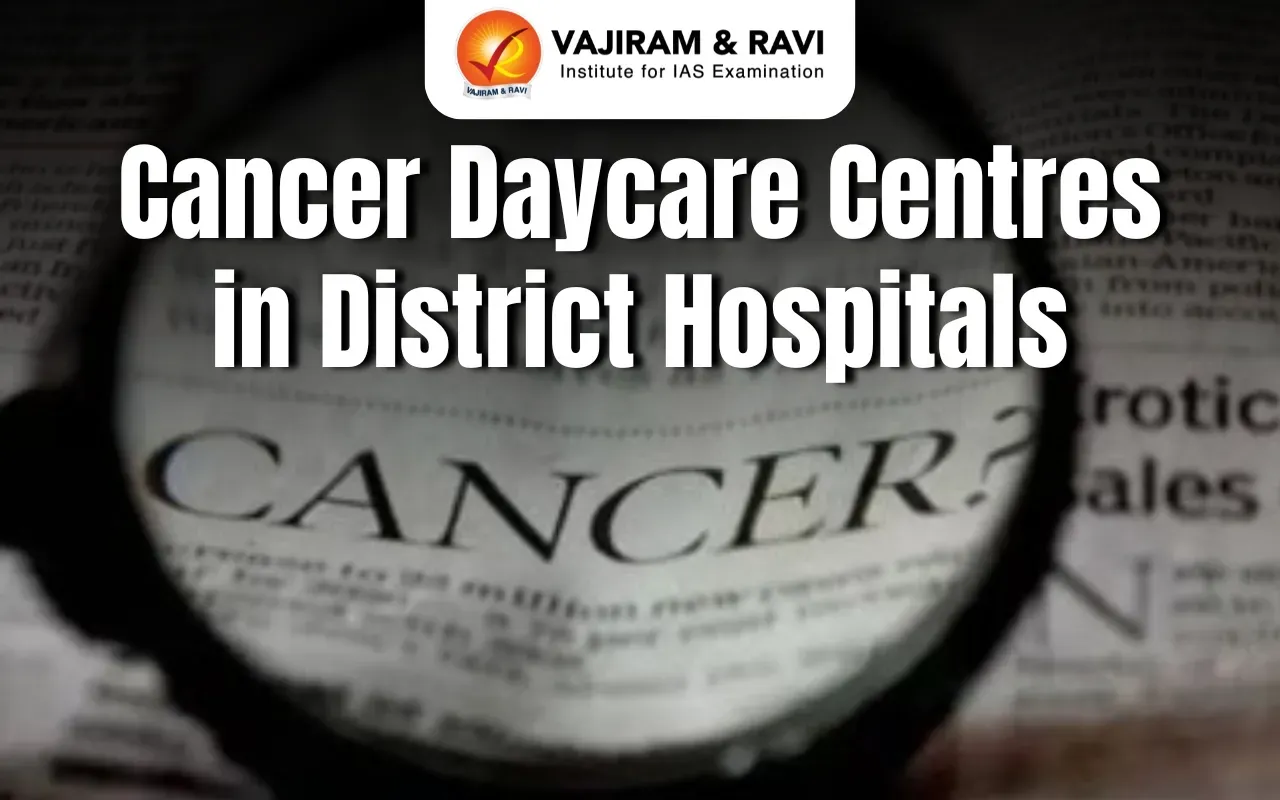 - The Union Health Ministry plans to set up cancer daycare centres in all district hospitals. Each centre will offer chemotherapy, counseling services, and medicines, with four to six beds. Every facility will have an oncologist or trained medical officer, two nurses, a pharmacist, a counsellor, and a multi-purpose worker.