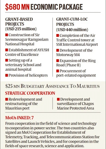 - India announced a special economic package worth $680 million for Mauritius, combining infrastructure, healthcare, defence preparedness, and maritime security.