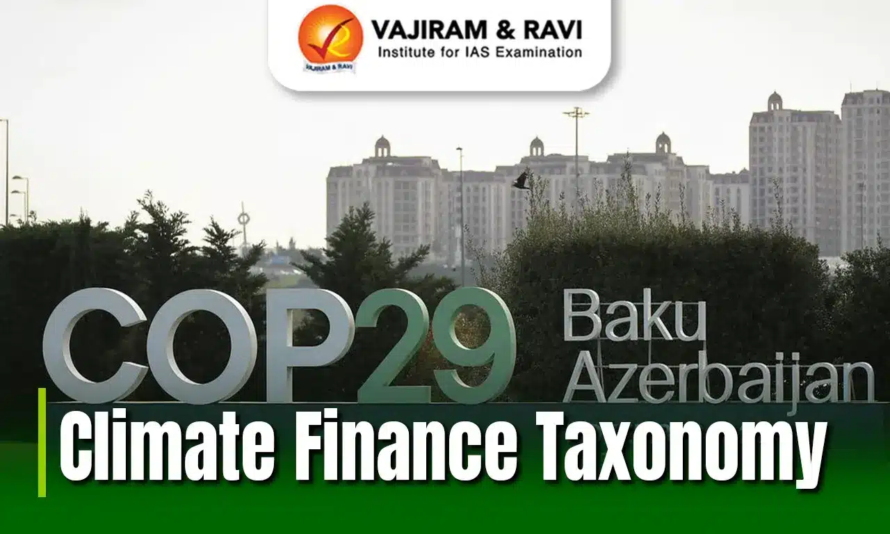 - The Finance Ministry has released a draft ‘Framework of India’s Climate Finance Taxonomy’ to guide investments into clean energy and climate-resilient infrastructure.