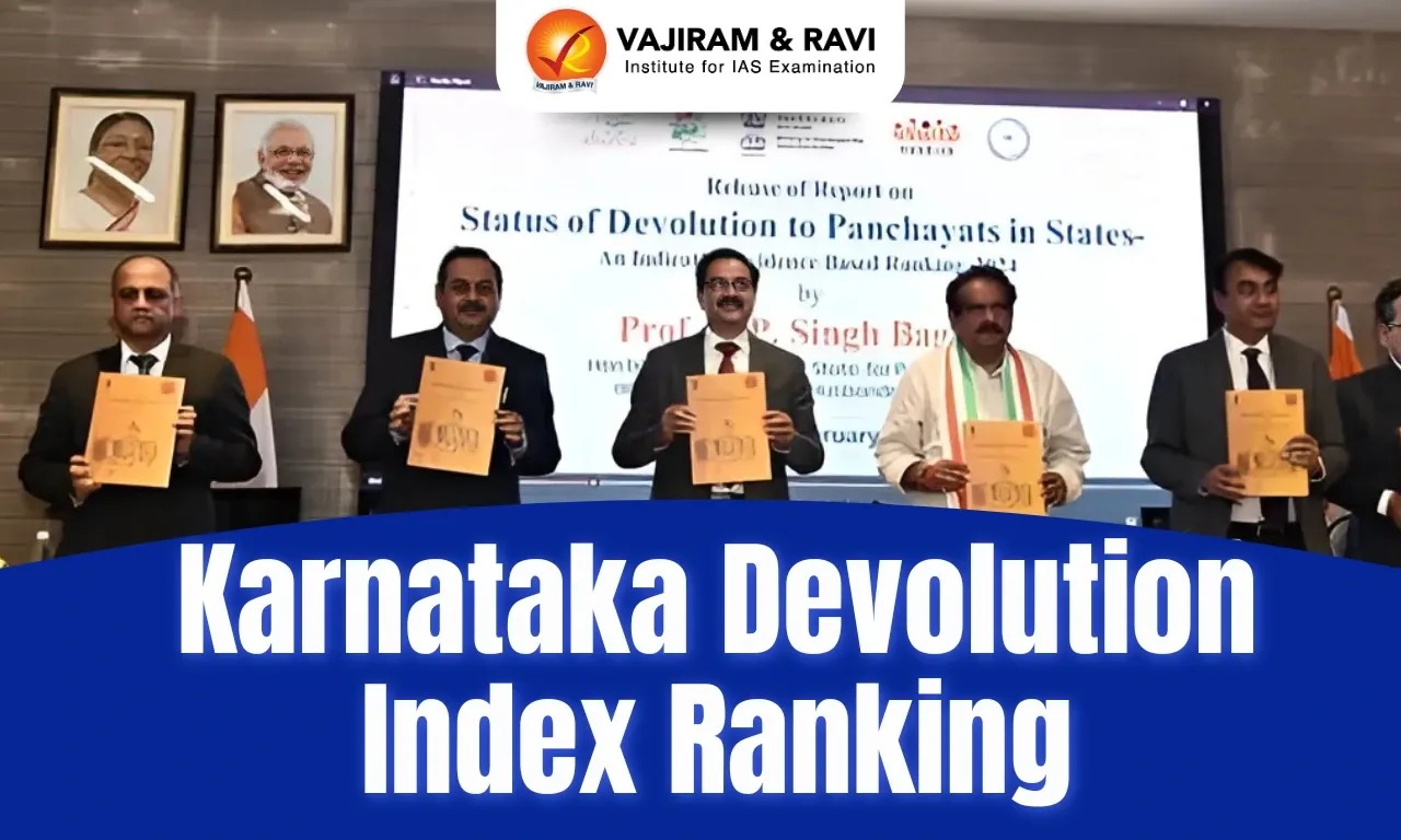 - The Devolution Index (DI) 2024 report, released by the Union Ministry of Panchayati Raj and the Indian Institute of Public Administration (IIPA), New Delhi, ranks Karnataka as the top-performing state in India’s Panchayat Raj system.