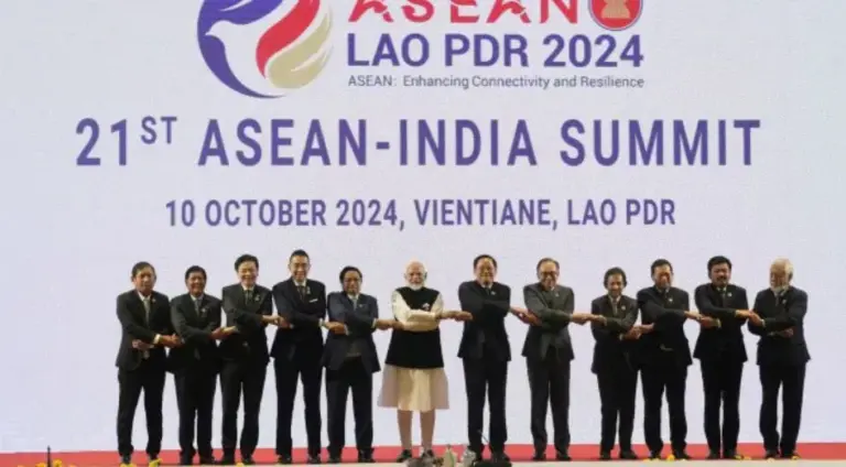 The 21st ASEAN-India Summit, held on 10 October 2024 in Vientiane, Lao PDR, marked a decade of India’s Act East Policy. PM Modi participated for the 11th time, joining ASEAN leaders to assess the ASEAN-India Comprehensive Strategic Partnership and to shape future cooperation.