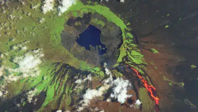 - The volcano has a large crater, or caldera, at its summit that harbors a permanent crater lake.