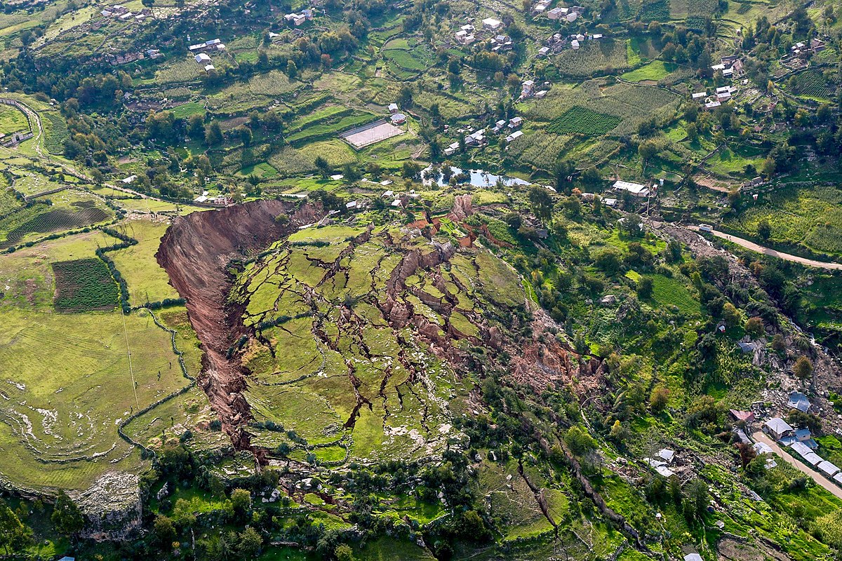 Landslides are caused by disturbances in the natural stability of a slope. They can accompany heavy rains or follow droughts, earthquakes, or volcanic eruptions.