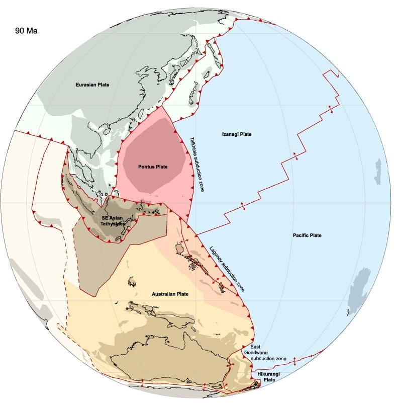 - Using magnetic techniques, researchers determined the basalt from Borneo were relics of Pontus that were left behind when this part of the plate subducted, some 85 million years ago.