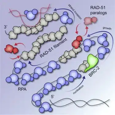 - RAD51 has the function of finding and invading homologous DNA sequences to enable accurate and timely DNA repair.