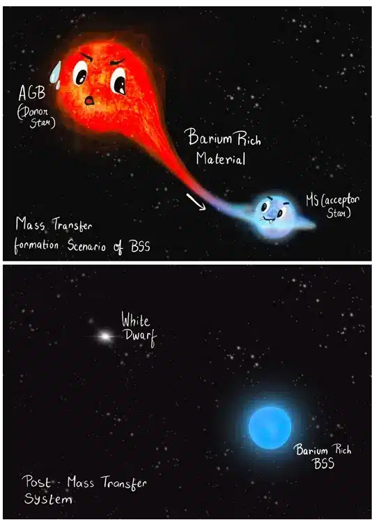 - The blue straggler star that we see now must have eaten up most of this barium-rich material due to its gravitational pull, and is now presenting itself as a rejuvenated star.