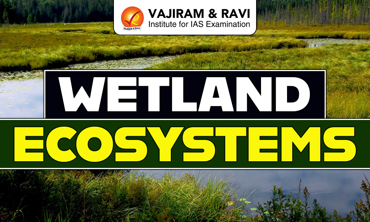 Wetland Ecosystems are areas where land is covered with water either permanently or seasonally, such as marshes, swamps, and mangroves. They support a wide variety of plants and animals and play an important role in maintaining ecological balance. Wetlands also help in water purification, flood control, and provide habitat for wildlife, making them valuable natural resources.
