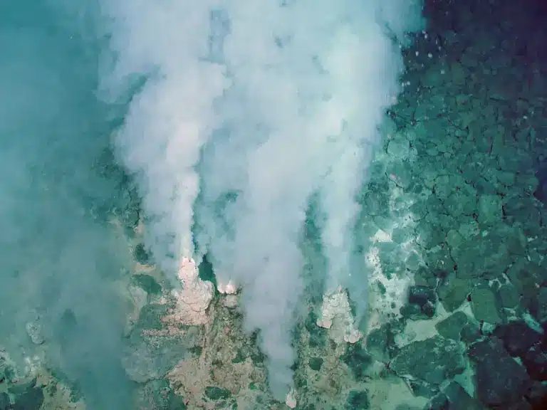 o The superheated fluid is then ejected back up to the seafloor and promptly chilled by near-freezing ocean bottom waters.