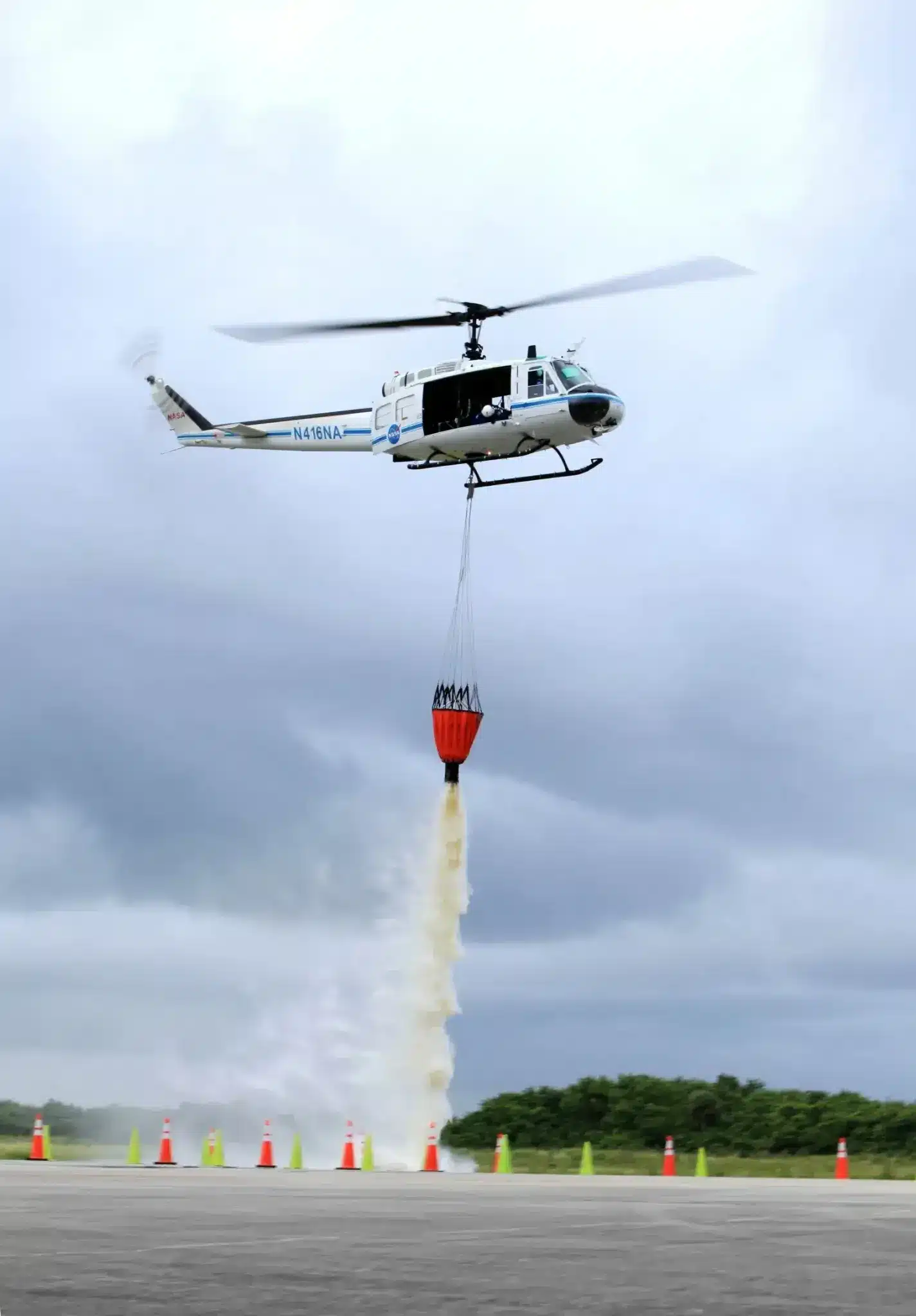- Features: It can be stored within the helicopter until development and it discharges a solid column of water, “resulting in a more accurate and effective water dump, less evaporation on the descent, and greater impact force.