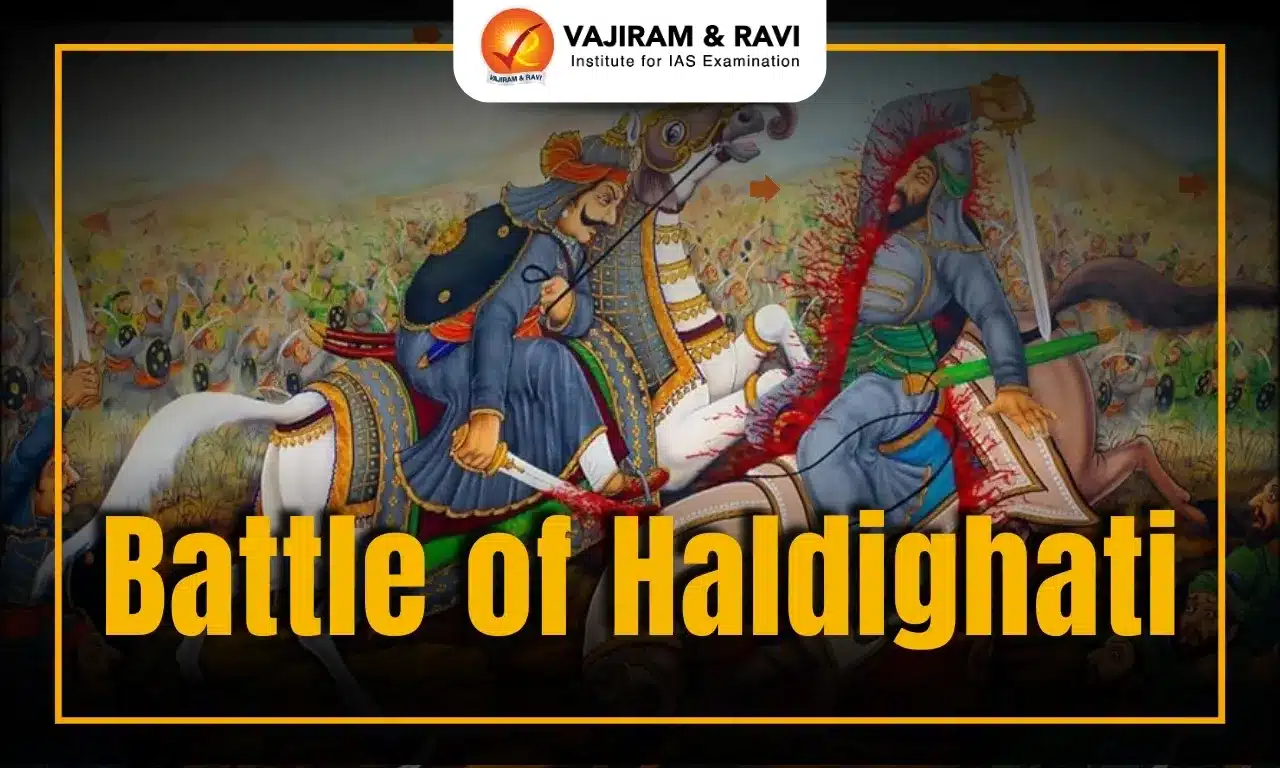 Battle of Haldighati was fought on 18 June 1576 between Maharana Pratap’s Mewar forces and the Mughal army led by Man Singh I. The battle symbolized bravery, determination, valor, and strategic retreats. It was a turning point in Mughal-Rajput history. The various events can be summarized as follows: