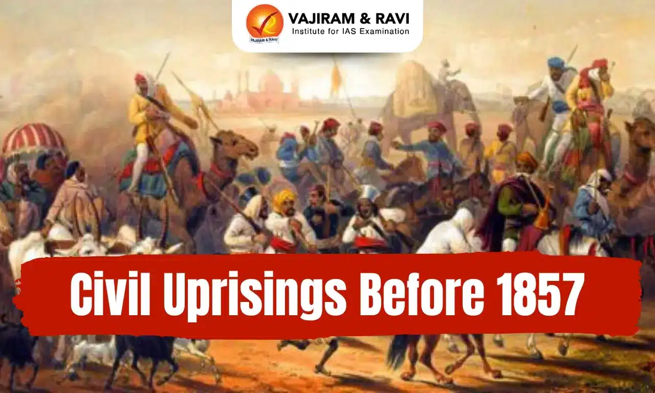 Civil Uprisings Before 1857: The colonial rule profoundly impacted all aspects of Indian society. Still, the first was the Indian ruling class and the erstwhile zamindars that bore the brunt of the British conquest. There were several civil uprisings in this period, led by the deposed rulers, ex-officials of conquered Indian states, impoverished zamindars, and feudal lords (poligars). The British policy of subsidiary alliance and discriminatory treatment of Indian sepoys in the army were the primary reasons for these uprisings, further fuelled by their economic policy and land revenue settlements that further sidelined the old order.