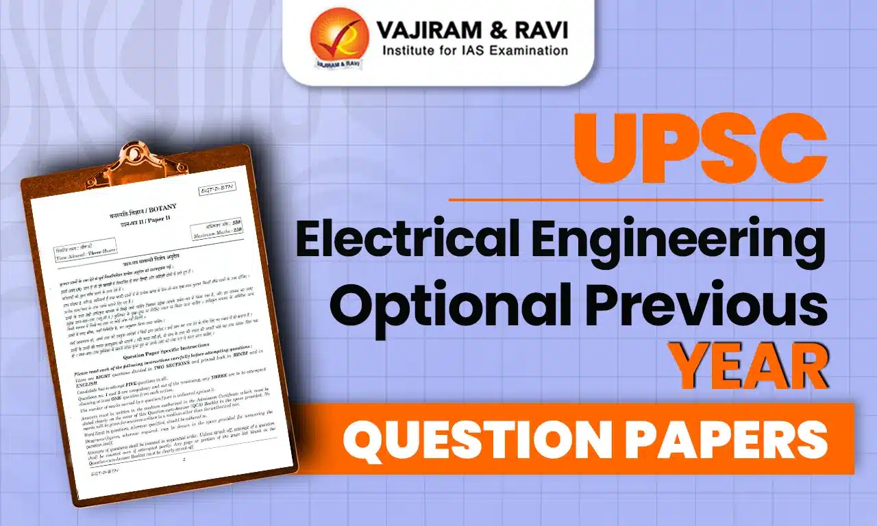 Electrical Engineering is among the commonly chosen optional subjects in the UPSC Exam. One of the smartest ways to prepare is by practicing UPSC Electrical Engineering Optional Previous Year Question Papers. They not only help you revise the subject thoroughly but also give you a sense of the exam pattern and the kind of questions asked. To support your preparation, we’ve put together a complete set of UPSC Electrical Engineering Optional Previous Year Question Papers for you.